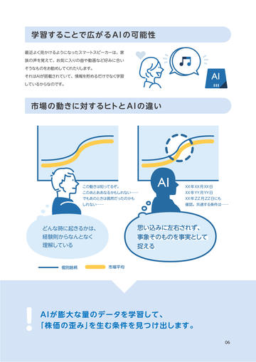 A I はヒトでは処 理できない量の データを、感情に惑わされずに分 析します。