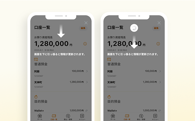 ※目的ごとの残高は、Wallet+にてご確認ください。アプリからは、ご利用の端末にインストールされているWallet+の目的預金の画面に遷移します。