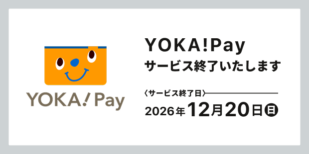 スマホ決済サービス「YOKA!Pay」は2026年12月20日をもって、サービスを終了いたします。