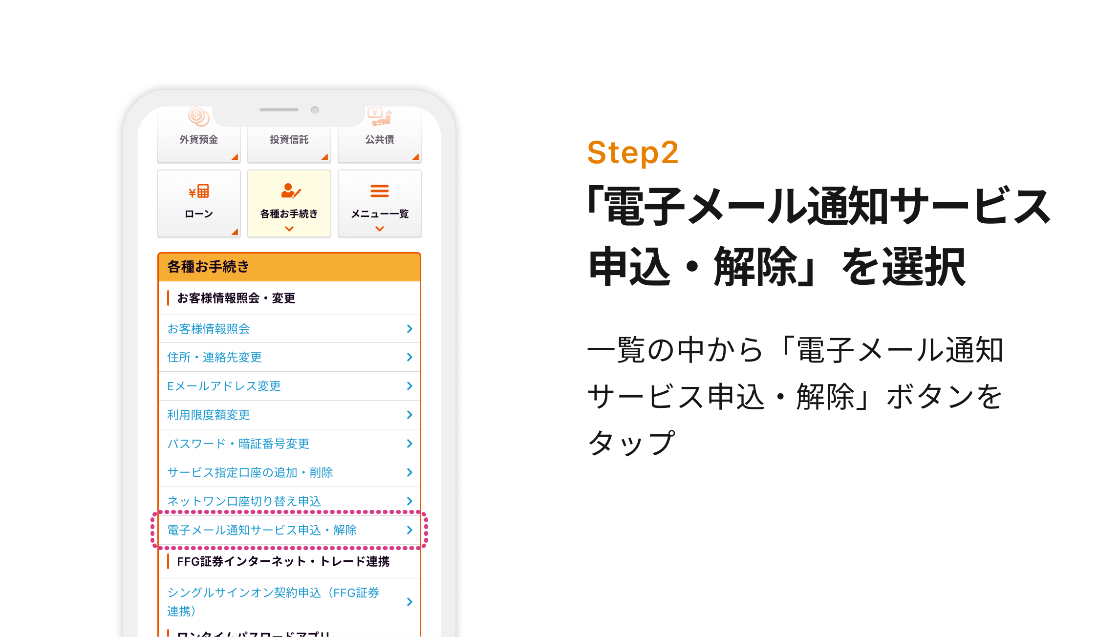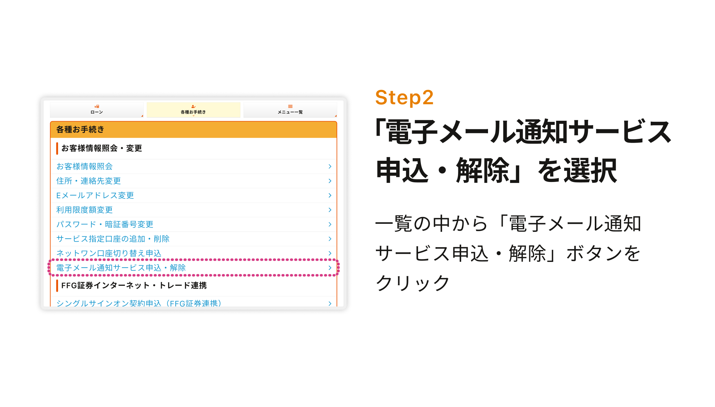※電子メール通知サービスの申込・解除はインターネットバンキングにログインしてからおこないます。